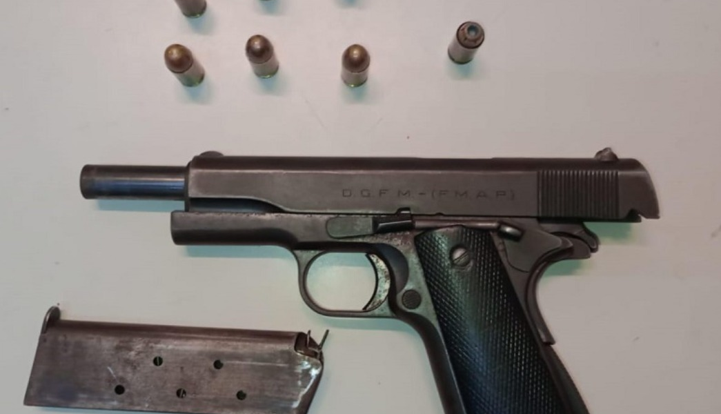 Durante la intervención, los agentes incautaron una pistola calibre 11.25 mm con inscripción “Ejército Argentino – Sistema Colt – Modelo 1927”, siete municiones en su cargador y numeración suprimida. Además, se secuestraron un televisor y un juego de utensilios de pesca, elementos presuntamente sustraídos del comercio.