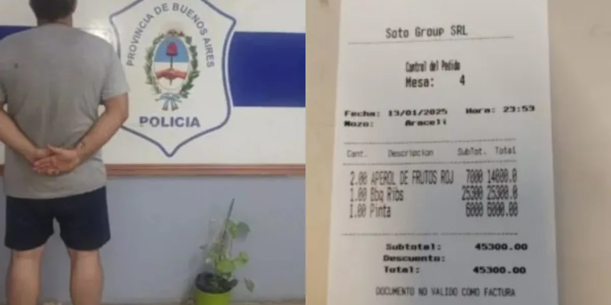 El hecho tuvo lugar en una sucursal de La Birra Bar, ubicada en la intersección de las calles Italia y Belgrano, en Avellaneda. Según trascendió, el hombre, de 33 años, había consumido un menú que incluía ribs de barbacoa, dos Aperol de frutos rojos y una pinta de cerveza. Todo esto sumaba una cuenta de $45.300.