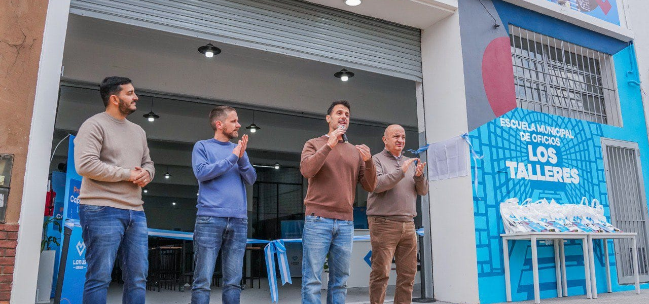 El intendente de Lanús, Julián Álvarez, y el secretario de Gobierno, Leandro Decuzzi, inauguraron la Escuela Municipal de Oficios Los Talleres, ubicada en la calle Guarracino 3025, Remedios de Escalada.