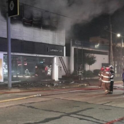 Un incendio de grandes proporciones se inició poco después de las 22.30 en la agencia Renault Lumiere ubicada en la avenida Hipólito Yrigoyen y Alberdi en pleno centro de Quilmes. Cuatro dotaciones de bomberos voluntarios de Quilmes trabajan en el lugar. El siniestro se inició en la planta alta y una densa columna de humo …