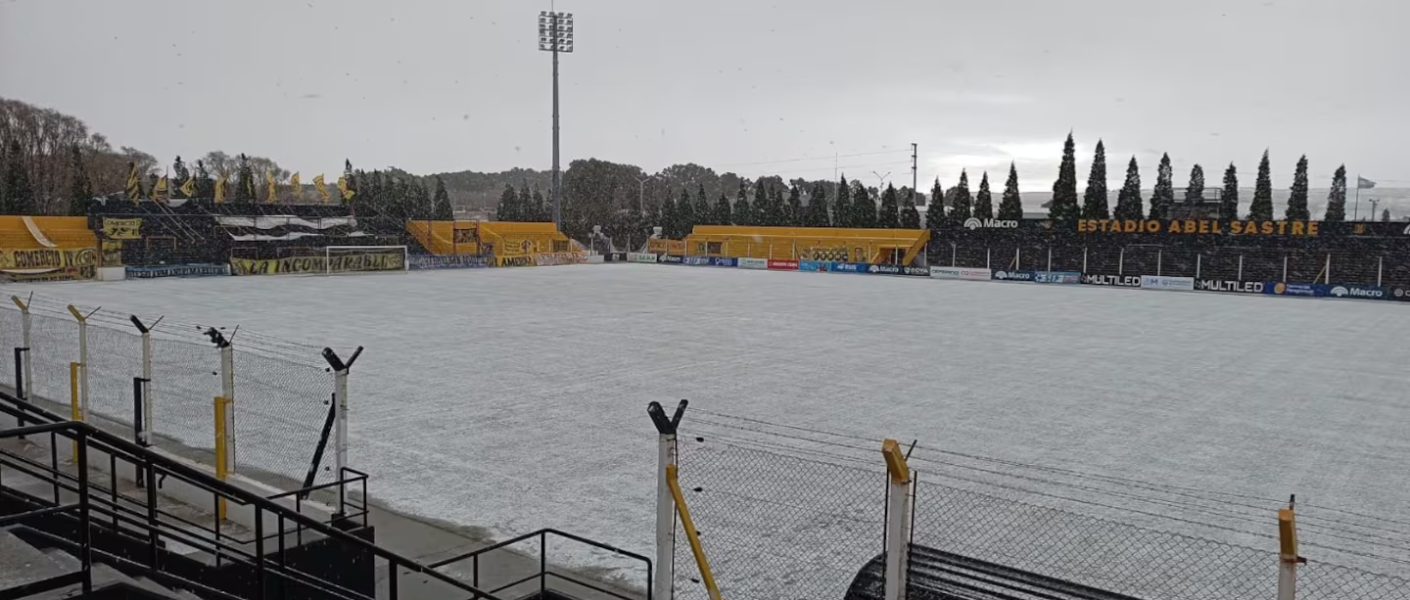 Se suspendió el partido entre Deportivo Madryn y Quilmes por la fecha 20 de la Primera Nacional por un insólito motivo: el terreno de juego del equipo local estaba completamente cubierto de nieve.